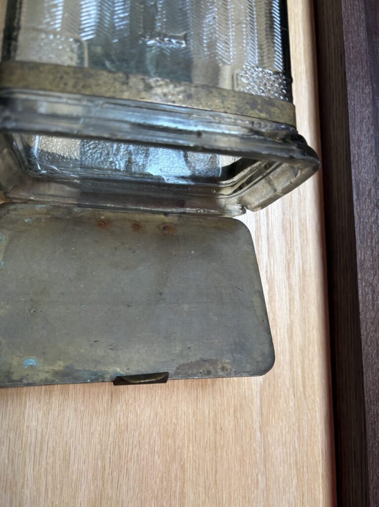 あまり情報がないのですが、1920年代ごろから作られていたものらしいです。お店で見つけた時にガラス部分の厚みがしっかりあること、透明感のバランスの絶妙なところや、ガラスと金属の組み合わせが気に入って購入しました。はじめは「MAIL」という字が目に入らなくて「これなんだろう」と色々考えて、上から入れて下から出すから、スーパーのビニール袋とかのストックに良いなーなんて考えてました。すぐにポストだと気づいたのですが、「なんでわざわざ壊れやすいガラスでポストなんて作ったんだろう」と疑問に思いました。ネットで調べると「中を覗かなくても手紙が届いているかわかるように」ということでした。言われてみれば当たり前のことなのですが、だからガラスなのかと妙に納得です。