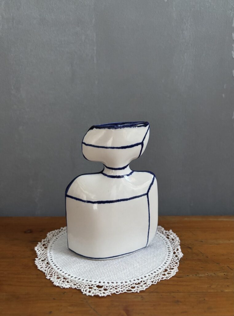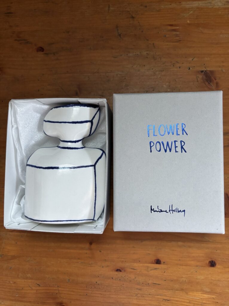 マリアンヌ・ハルバーグ(Marianne Hallberg)というスウェーデンのアーティストの方の「香水瓶の花瓶」という作品でした。そしてそれを愛知県瀬戸市の窯元さんにて瀬戸焼で作ってくださっていて、日本で手に入るということでした。兎にも角にも長女のおかげでうちにお迎えすることができて本当に嬉しいプレゼントでした。