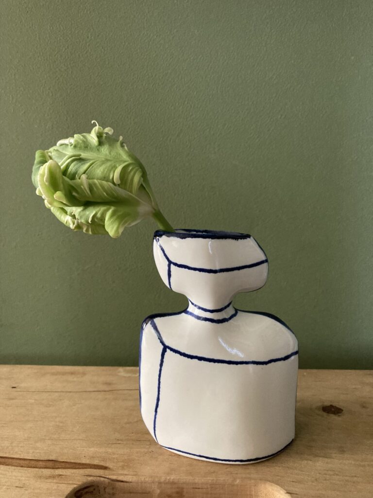 すごく個性的なチューリップが手に入った時に、この花瓶にさしてみました。するとその姿が私に創作意欲を呼び起こしてくれたのです。