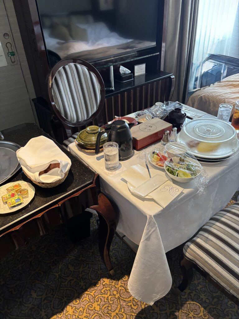 何が嬉しいか自分でもよくわからないのですか、なんだかとっても嬉しくって楽しかったです。多分夢が叶った感覚なのですね。朝食をホテルのレストランで食べるのも大好きですが、部屋で食べるとリラックスできてマイペースに食べられてちょっと幸福感が増す感じがしました。