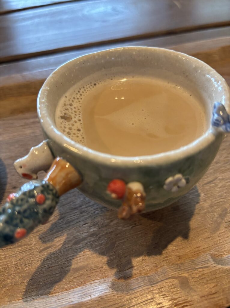 小さな森がコップになっているような可愛い可愛いカップ。これでカフェオレをオーダー。そしたらこうやってきたのです。
