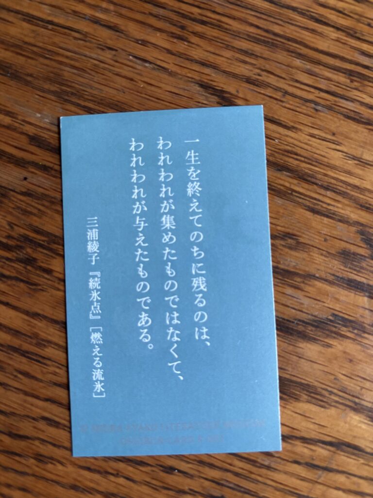文学館の中に好きなカードを1枚いただけるコーナーがありました。そこで私がいただいたのがこのカードです。