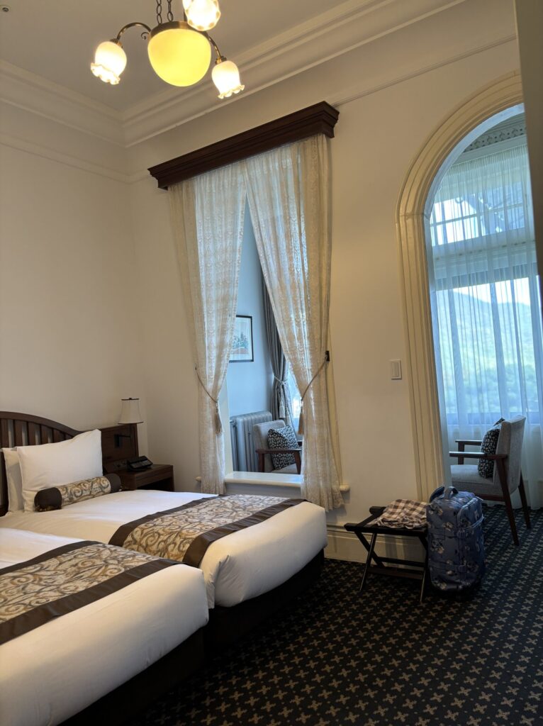 前回は花御殿に泊まりましたが、今回は本館をリクエストさせていただきました。本館のお部屋はフロントの真上の2階で、部屋に迷うことなく行けて(前回の花御殿はフロントからはだいぶん離れています。富士屋ホテルは何棟もあってとても大きな敷地です)とても便利でした。部屋の雰囲気はこんな感じです。
